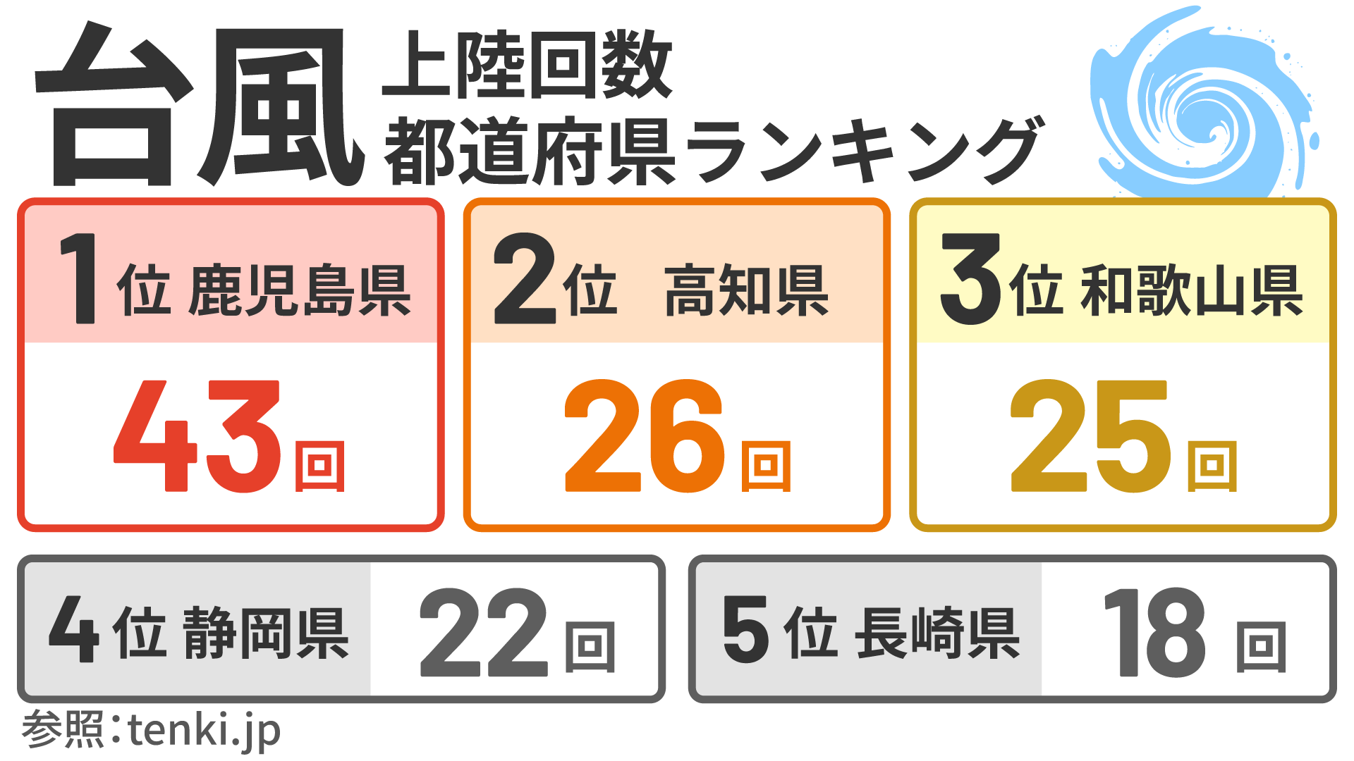 接近・上陸が多い和歌山